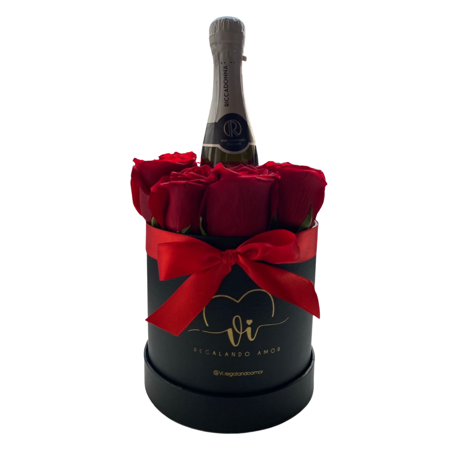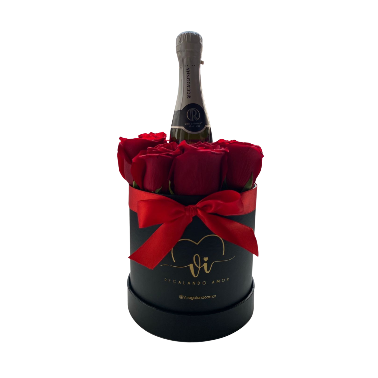 Celebra el amor y la pasión con nuestra Box Clásico con Espumante! Esta elegante caja incluye un deslumbrante arreglo de rosas rojas frescas, símbolo eterno de romance y admiración.