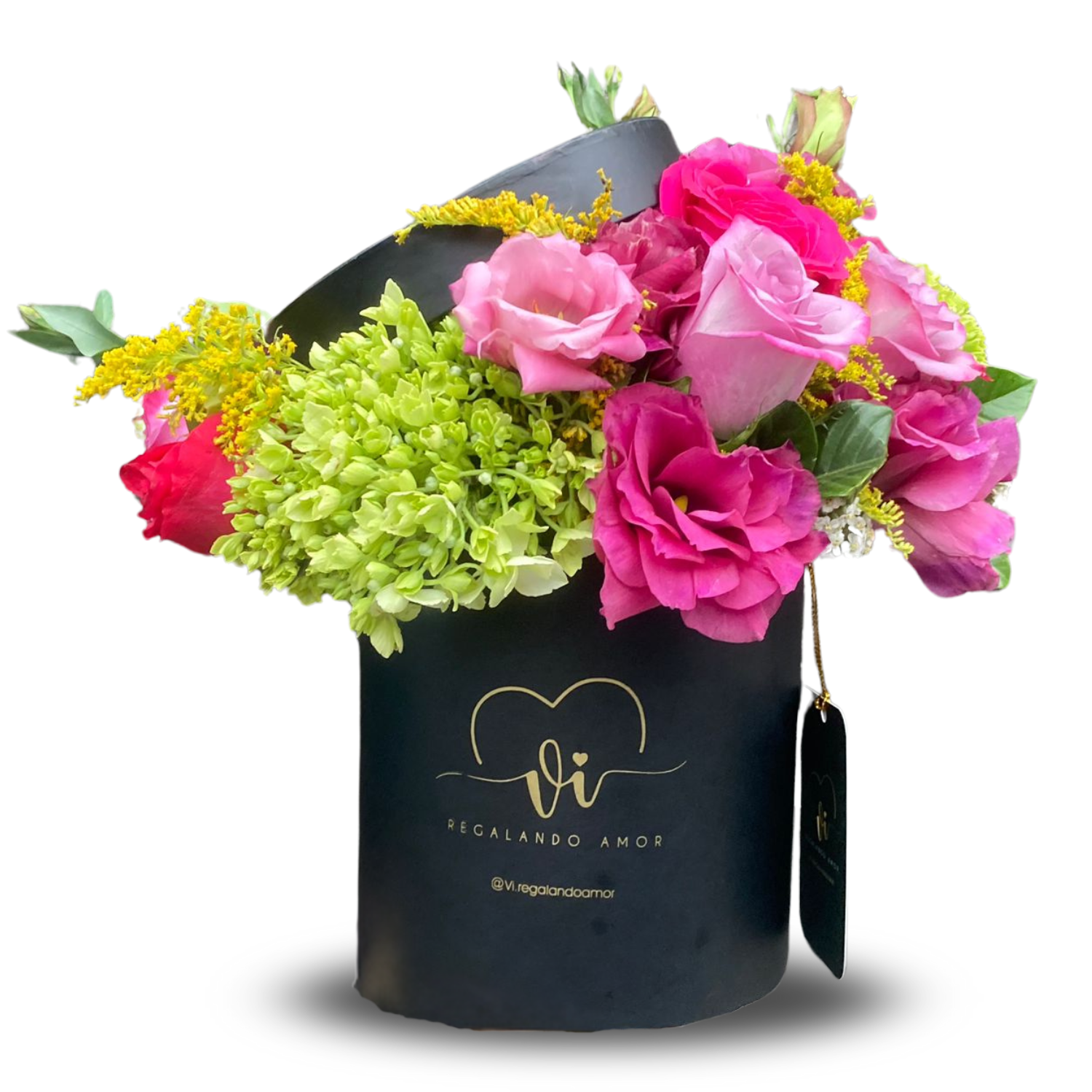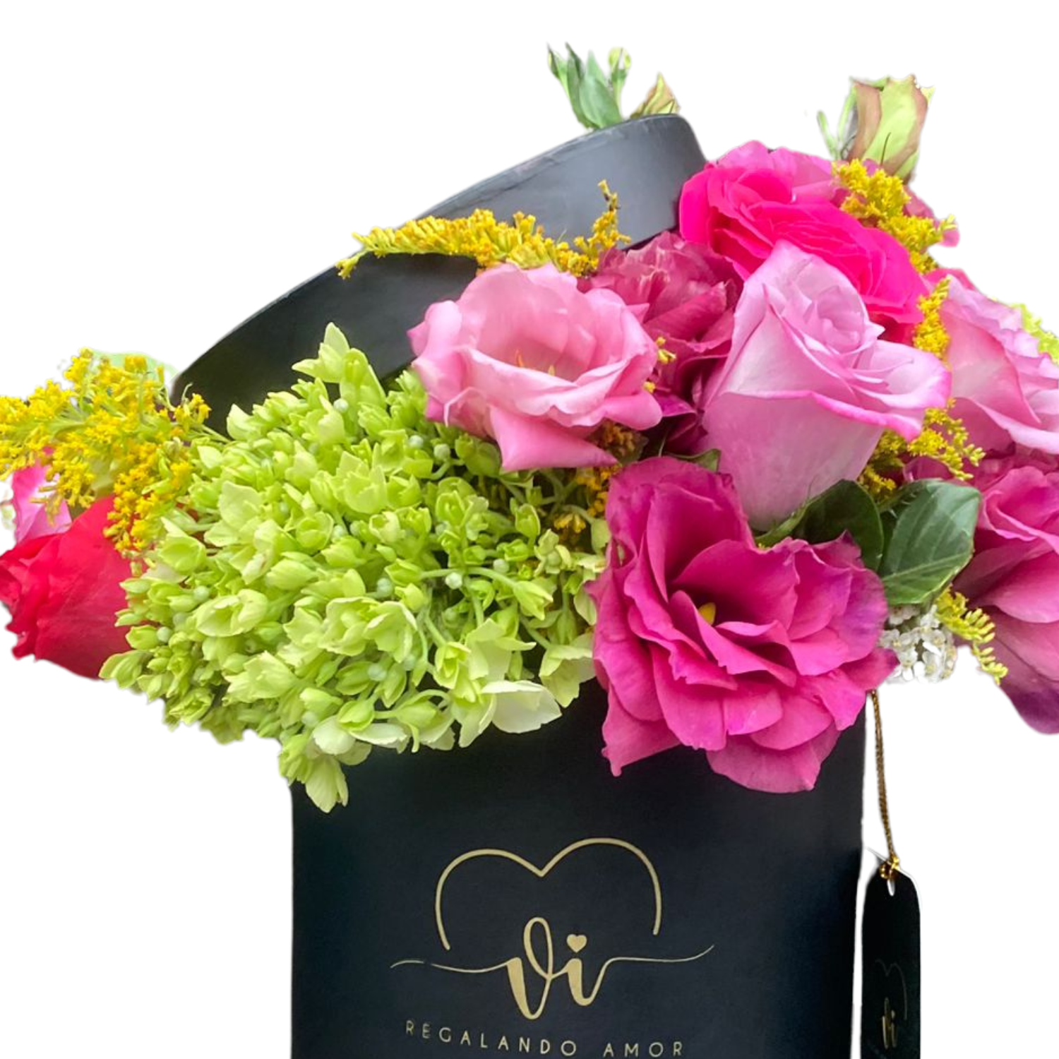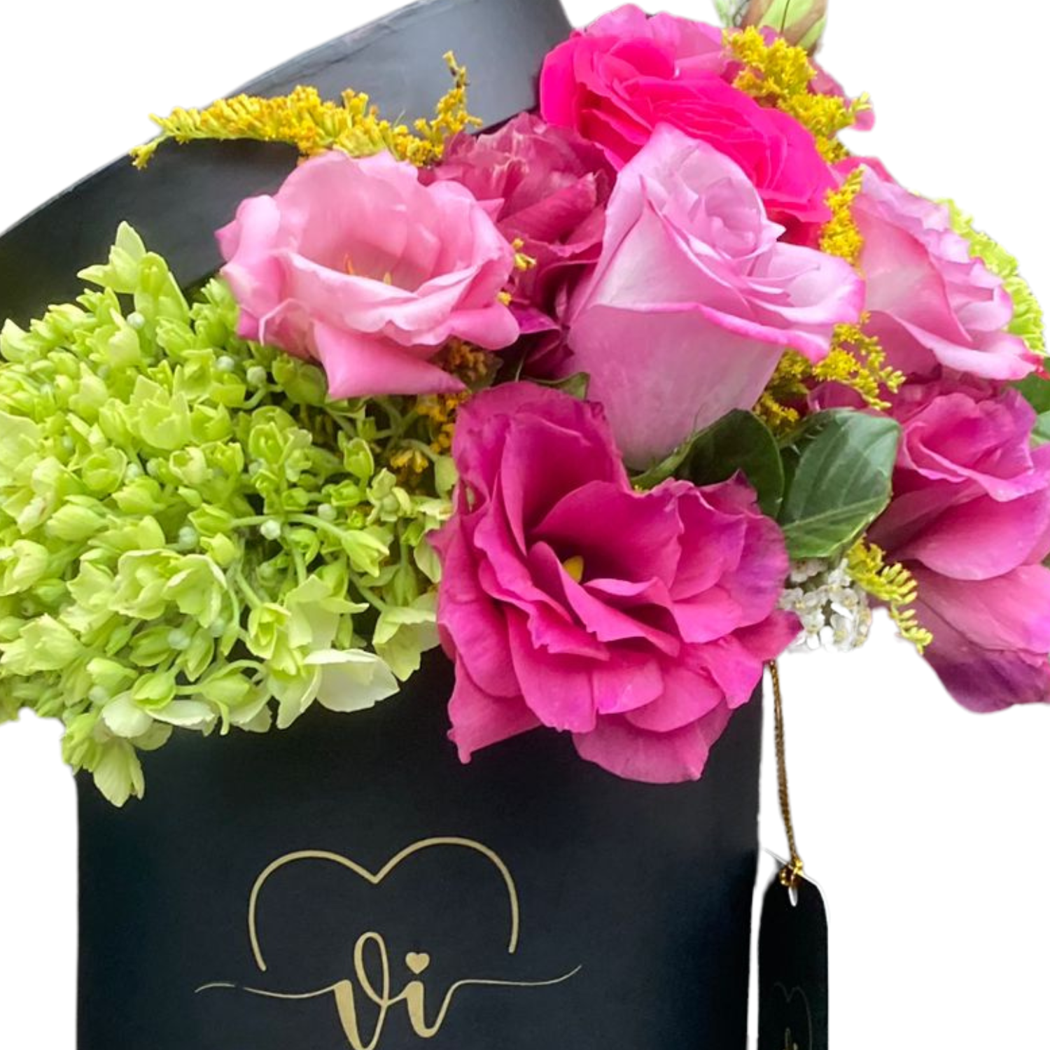 Descubre la elegancia de nuestra Box Lara, una exquisita sombrerera que combina la delicadeza de los lisianthus con la frescura de la hortencia verde. Este arreglo es perfecto para quienes buscan un toque moderno y sofisticado en su decoración o un regalo especial que destaque.