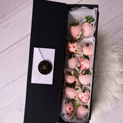 Caja de lujo con 12 fresas frescas cubiertas con chocolate. Un detalle elegante y delicioso para sorprender en cualquier ocasión especial.