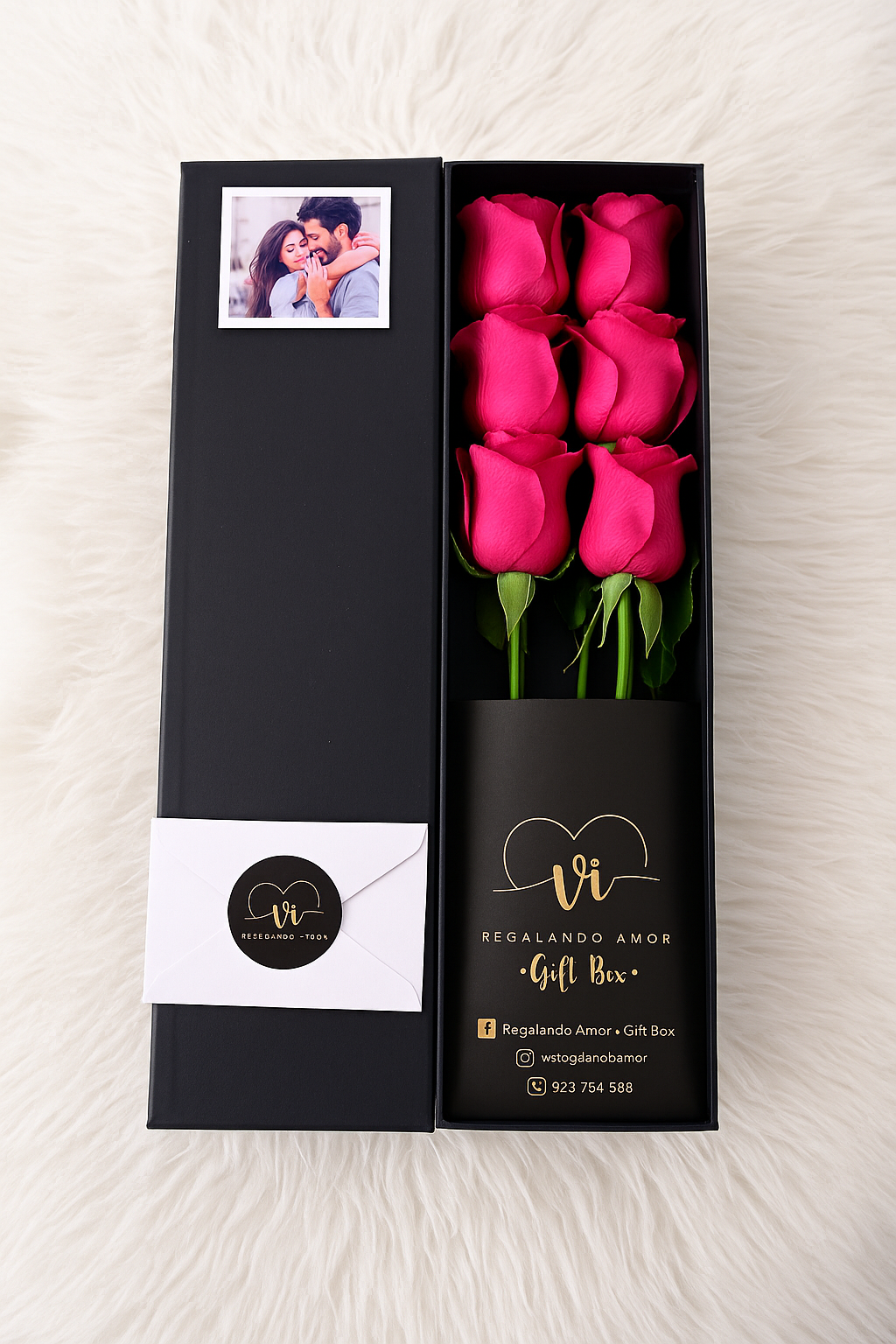 Descubre la intensidad del color y la elegancia con nuestro exclusivo 'Box Luxury de 6 Rosas Fucsia'. Cada rosa, seleccionada minuciosamente, exhibe la vibrante vitalidad del fucsia en un elegante arreglo floral. Este box luxury fusiona la frescura de las rosas con un diseño premium, creando una expresión audaz y sofisticada.