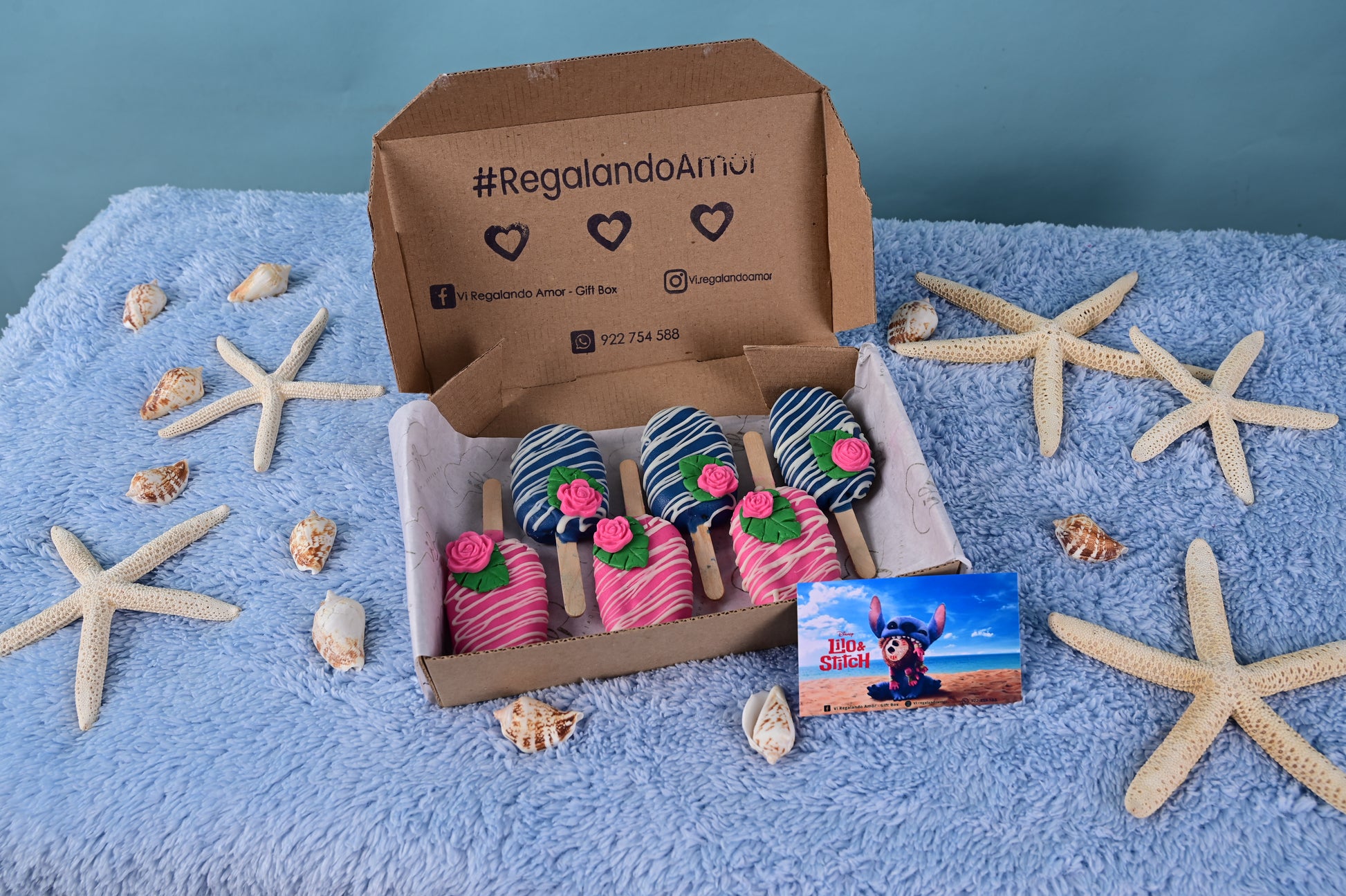 Un detalle fuera de lo común que combina dulzura, creatividad y mucho amor. El Box Nani incluye deliciosas paletas de keke esponjoso , bañadas en chocolate y decoradas con detalles inspirados en Stitch y el espíritu hawaiano . Un regalo lleno de color y ternura que encantará desde el primer bocado.