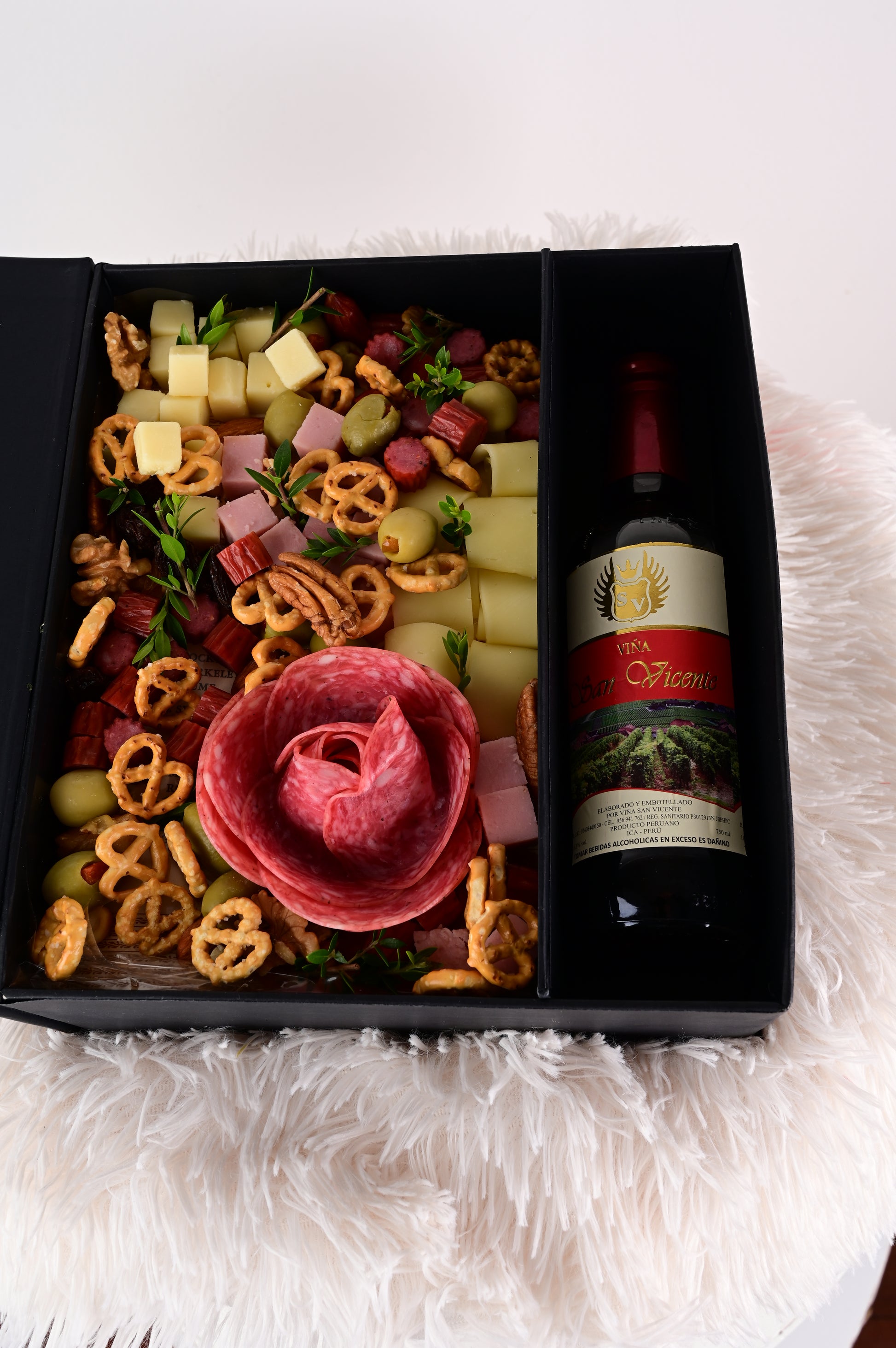 Perfecto para una noche de relax o una celebración especial, este box reúne sabores que combinan a la perfección con una buena copa de vino tinto o blanco: