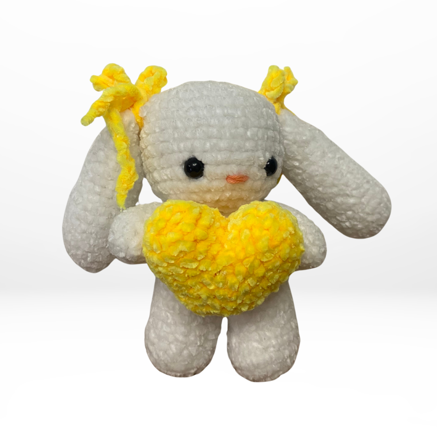 Encantadora coneja tejida en chelline, ideal como recuerdo especial o acompañante de arreglos florales. Su textura suave y diseño único transmiten dulzura y calidez.