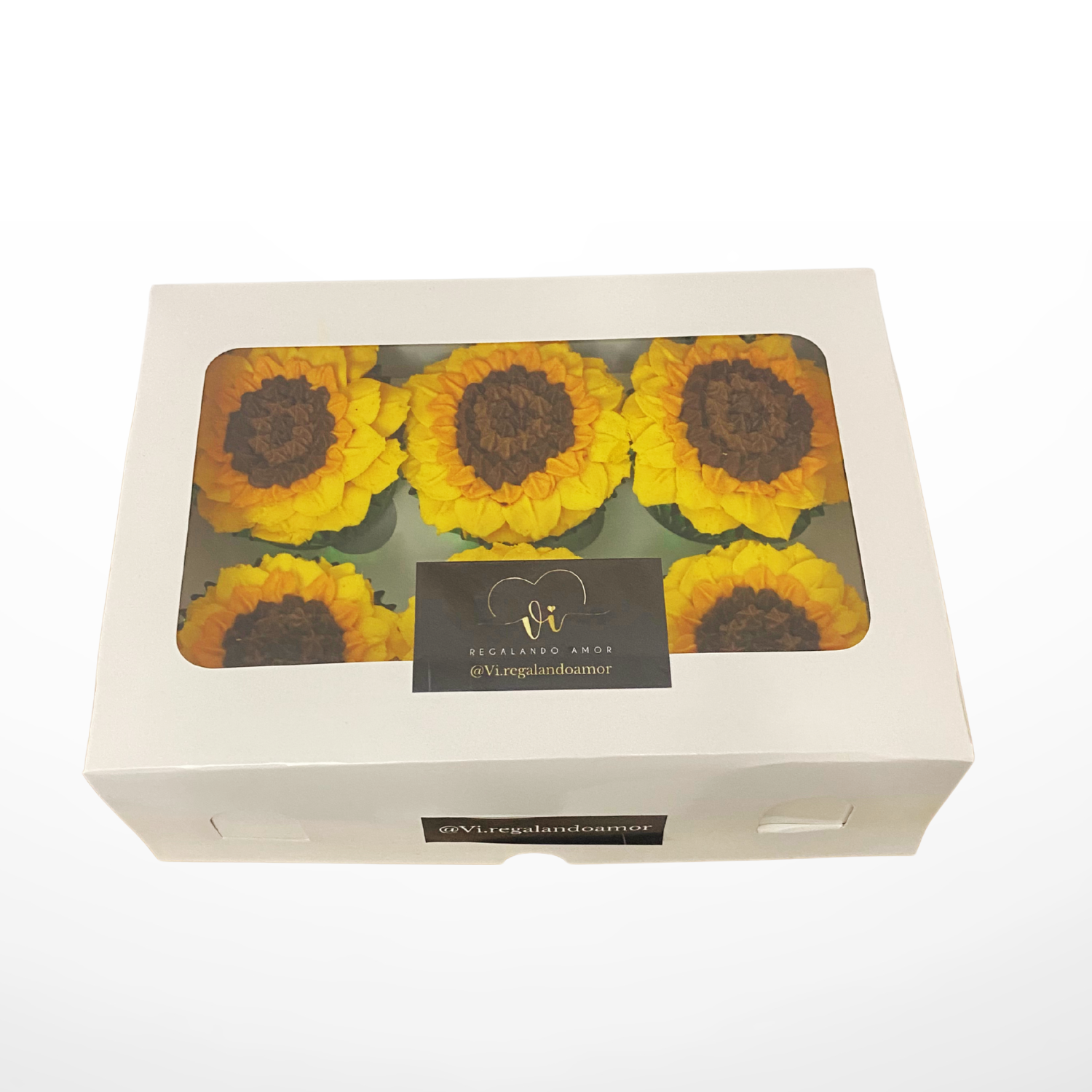 Set de 6 cupcakes de chocolate, decorados con estilo primaveral. Ideales para regalar, compartir o acompañar celebraciones con un toque dulce y elegante.