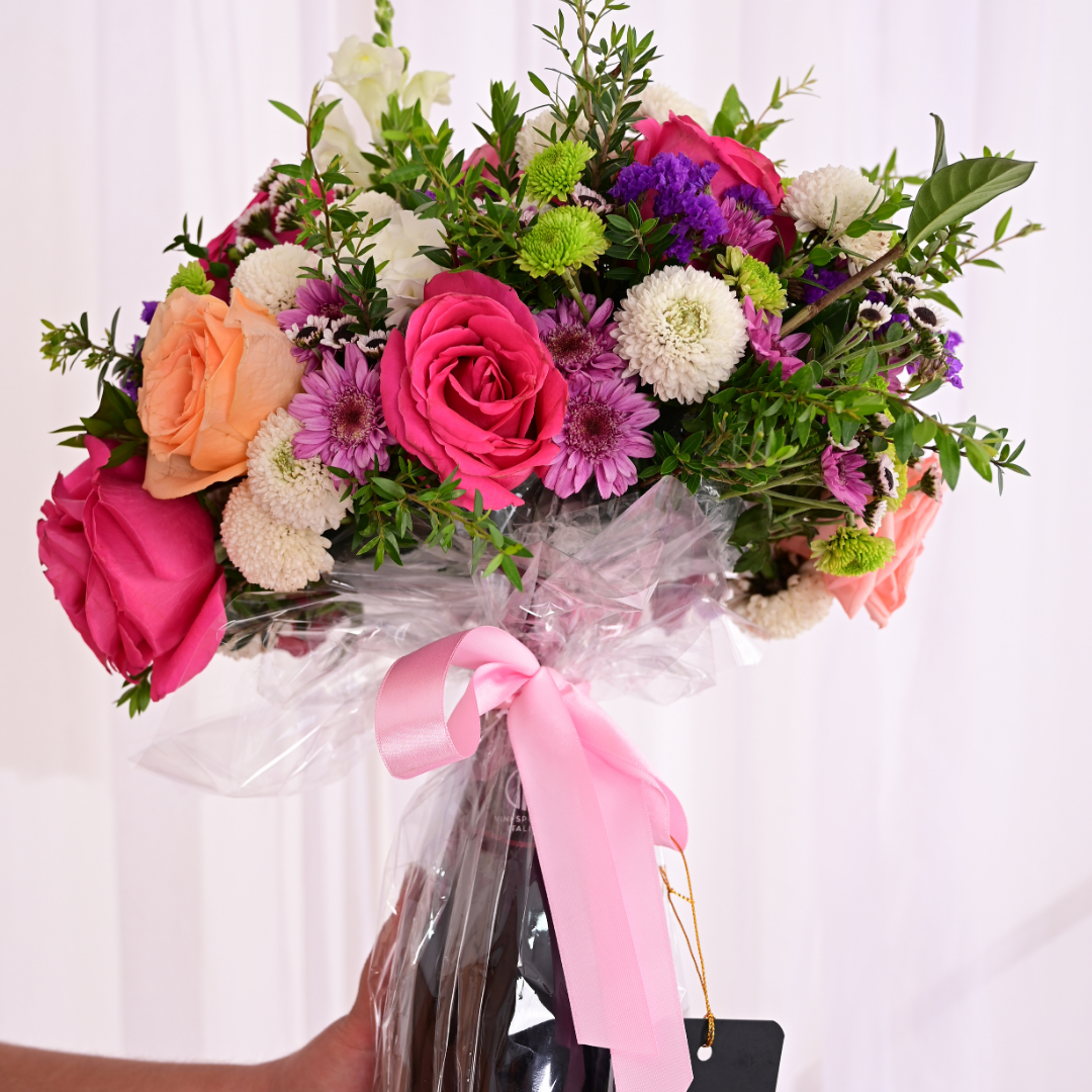 El Espumante Riccadonna Floral es la elección perfecta para celebrar momentos especiales. Este hermoso arreglo floral combina flores frescas y elegantes, creando una presentación impresionante.