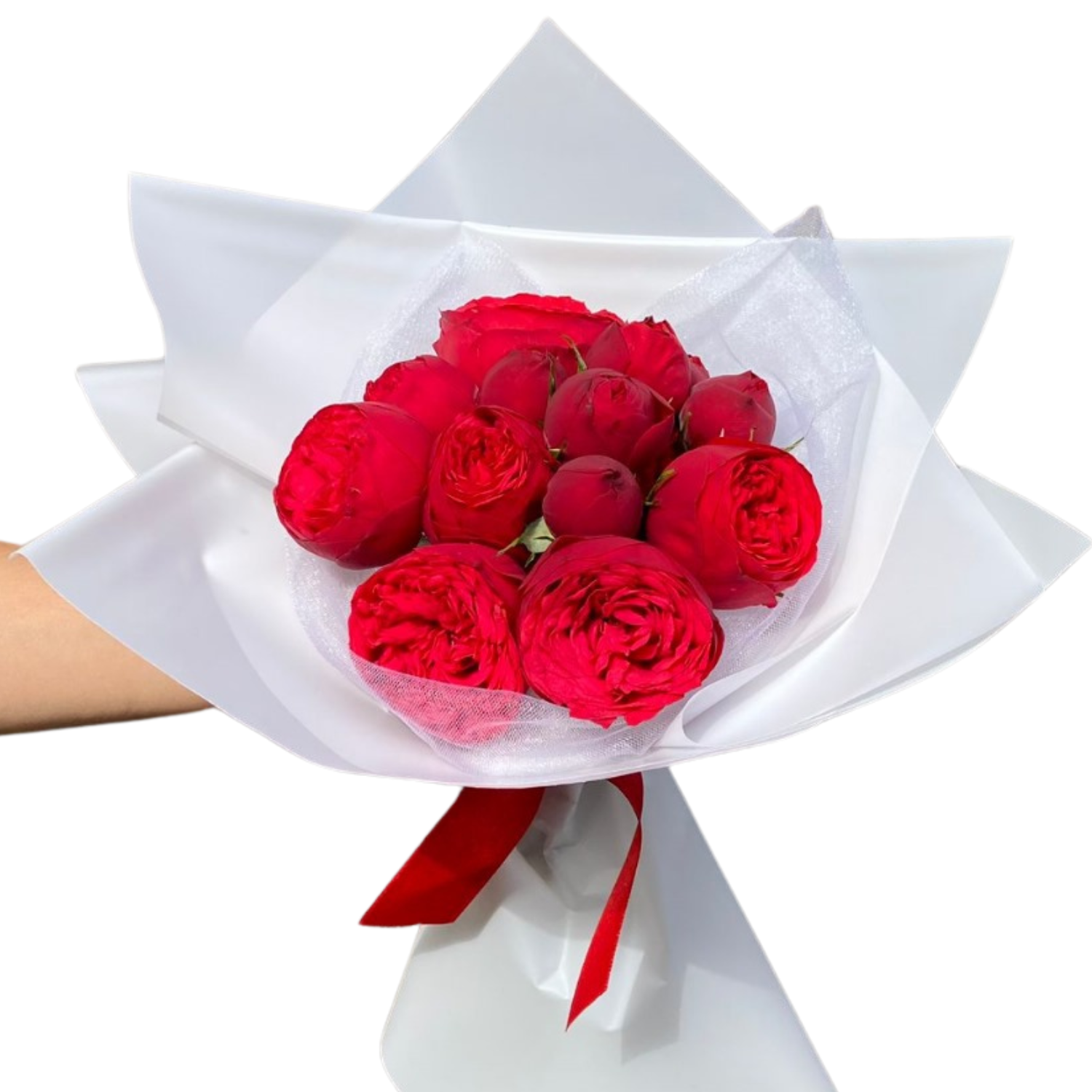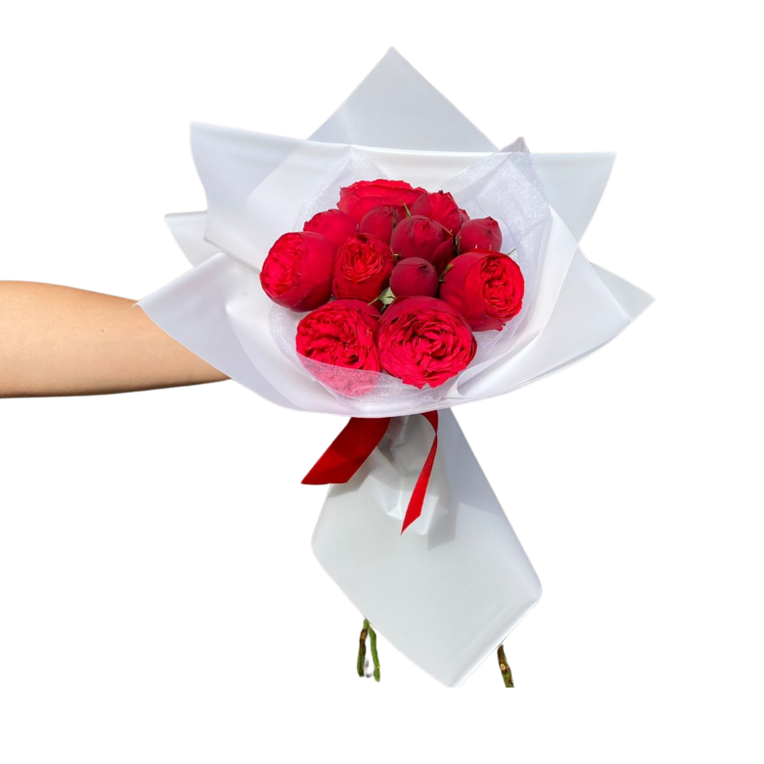 Este hermoso Mini Ramo Blair está compuesto por 12 a 15 rosas inglesas rojas , conocidas por su delicada forma y suave textura. Su aroma sutil y romántico lo convierte en un regalo ideal para cualquier ocasión especial: