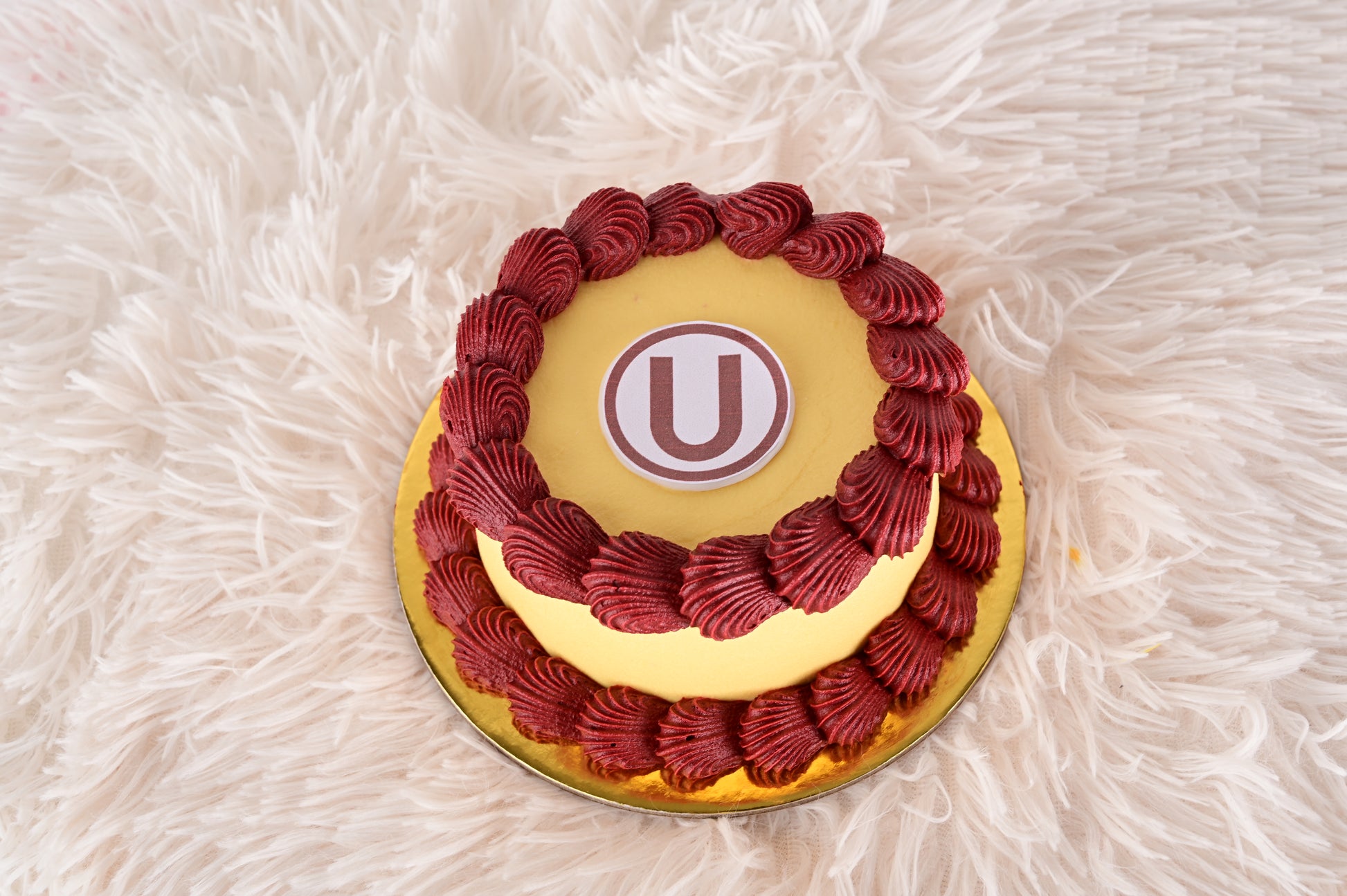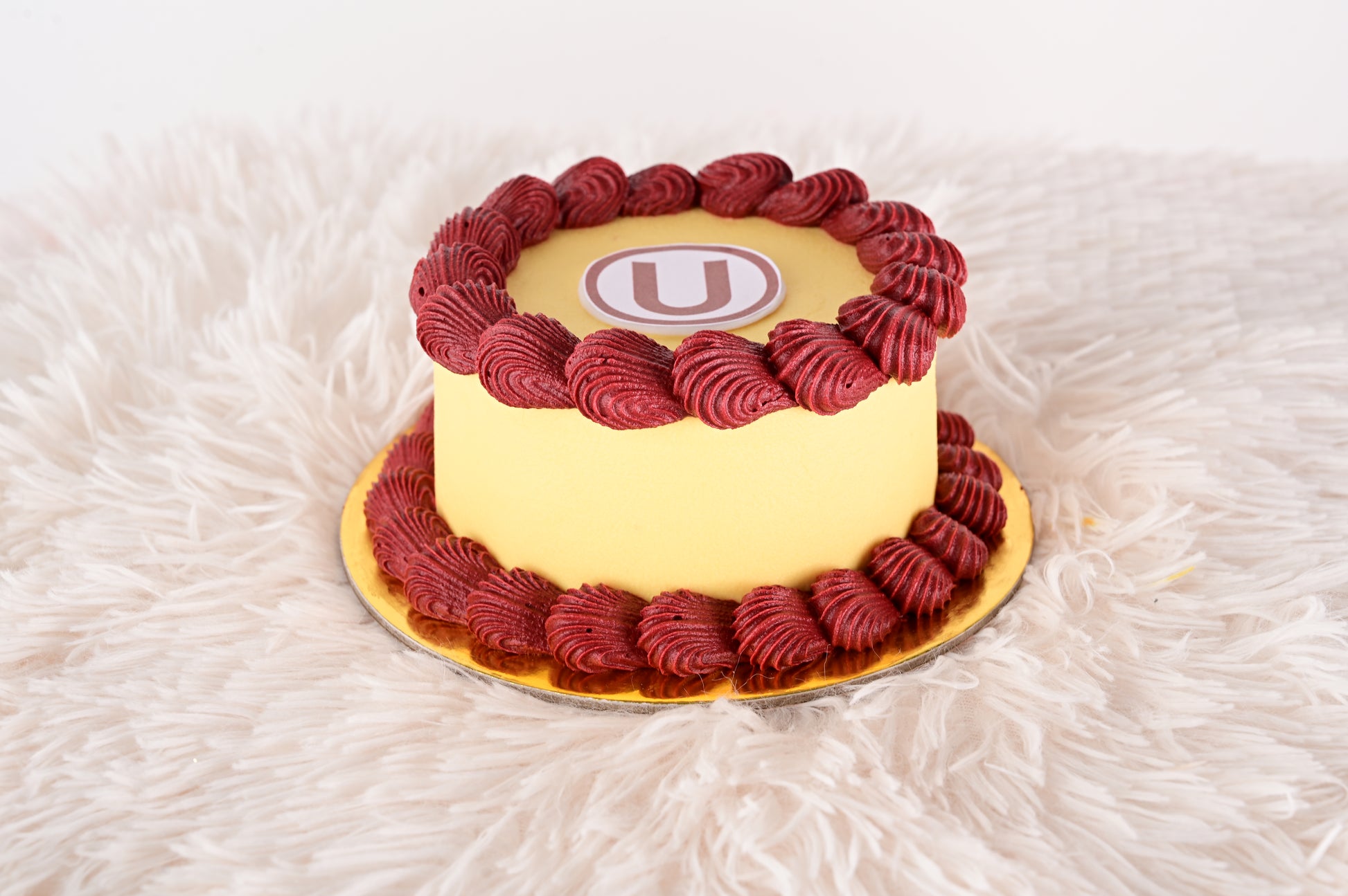 ¿Papá es crema desde la cuna? Sorpréndelo con una mini torta temática de la U. Sabor vainilla y decoración del equipo.