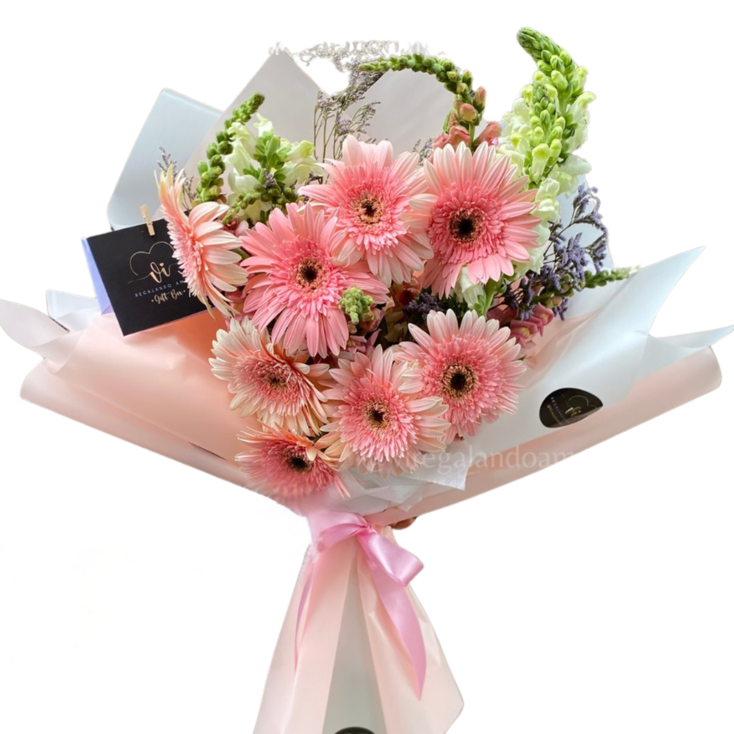 Dale un toque de alegría y frescura a tus días con nuestro encantador Ramo Camila. Compuesto por vibrantes gerberas rosadas, este ramo es una celebración de la belleza y la vida. Cada flor, con su forma alegre y colores vibrantes, es perfecta para alegrar cualquier ocasión, ya sea un cumpleaños, un aniversario o simplemente para sorprender a alguien especial.