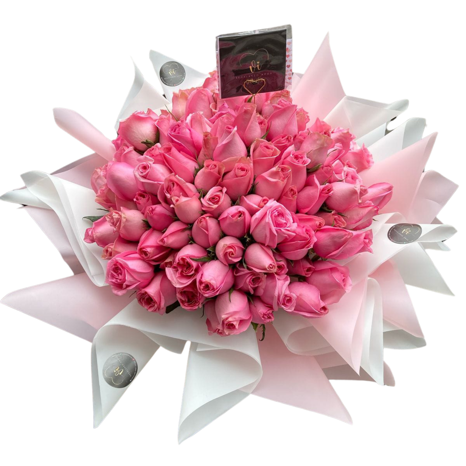 Este majestuoso ramo, compuesto por 100 rosas rosadas perfectamente seleccionadas, es el regalo perfecto para celebrar grandes momentos y dejar una impresión duradera.