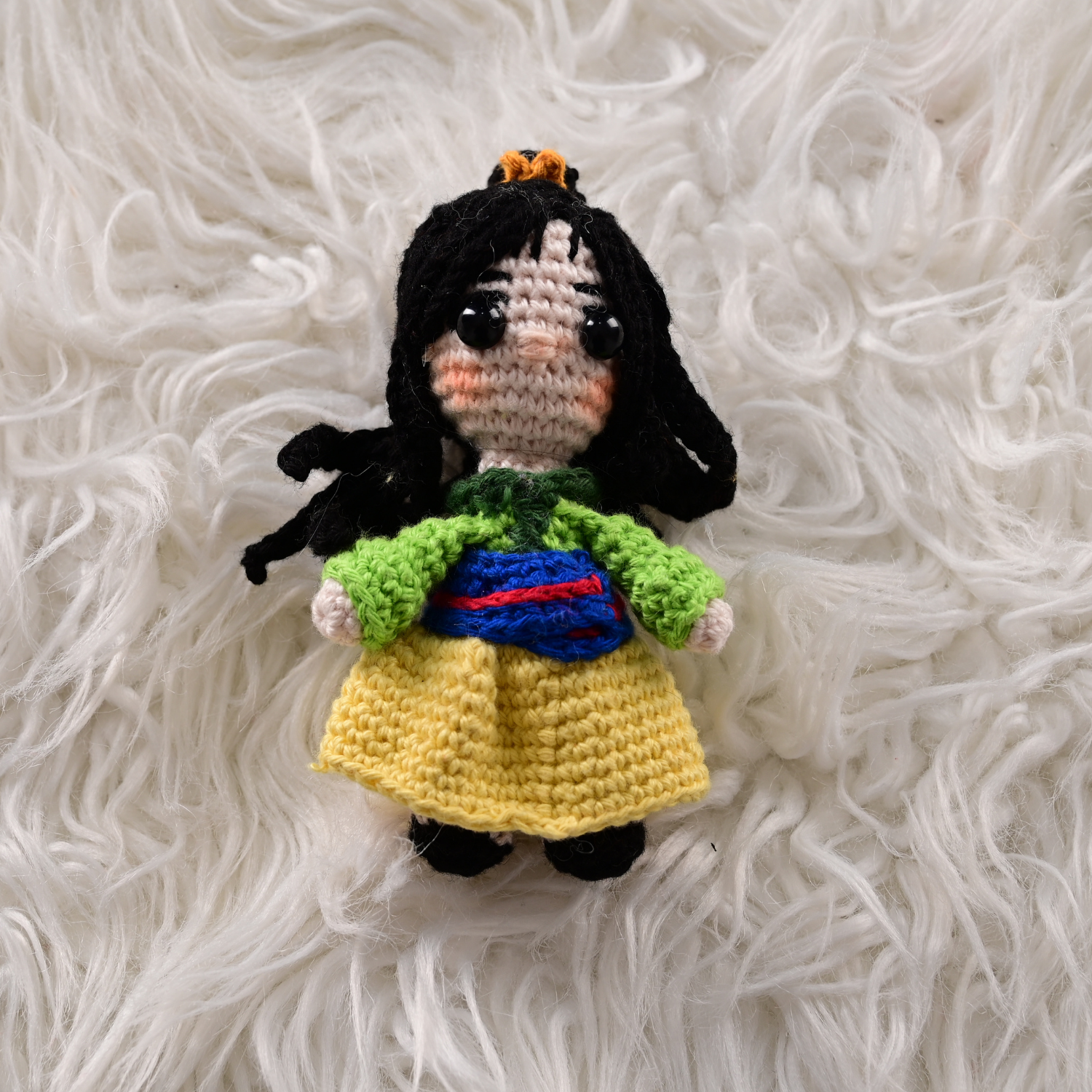 Amigurumi Mulán: 13 cm alto x 5.7 cm ancho x 4 cm largo
