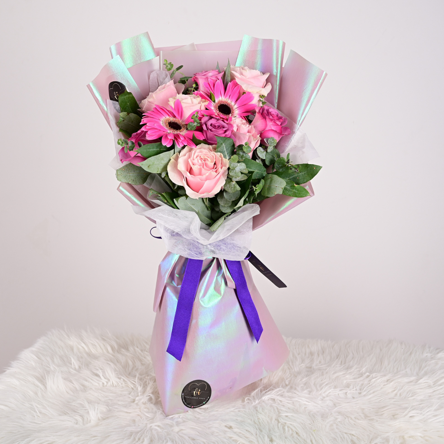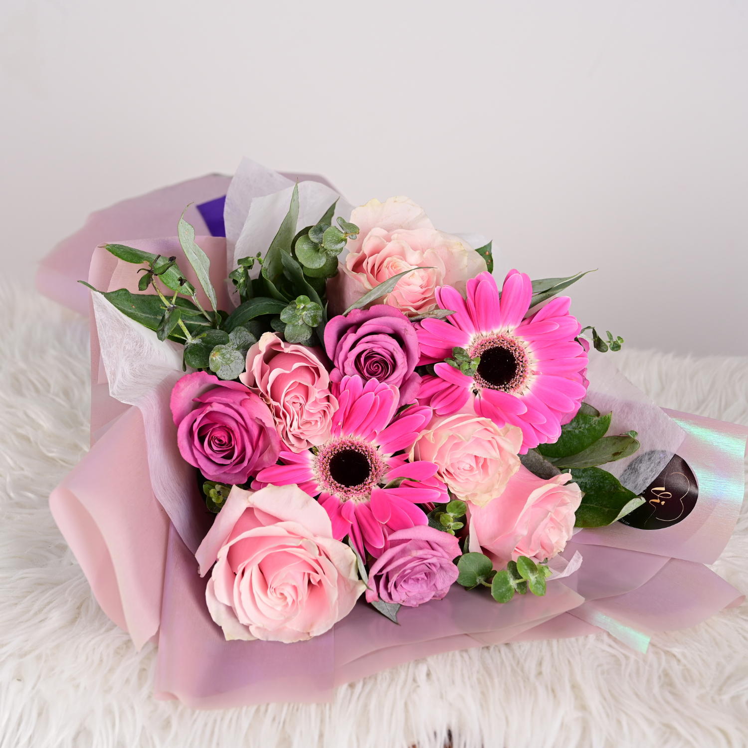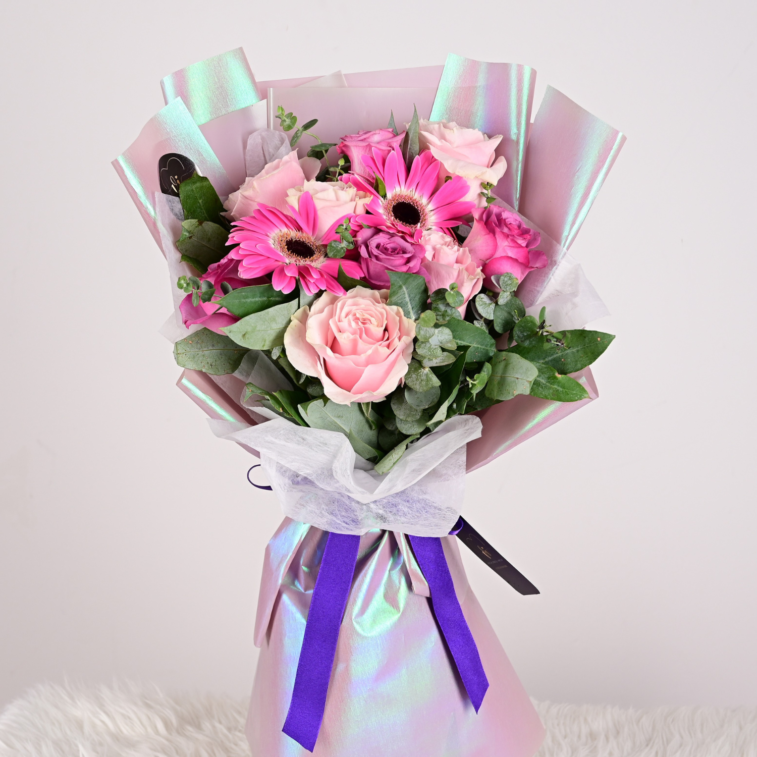 Un ramo luminoso con flores en tonos lilas y rosados que evocan la creatividad y alegría de Rapunzel. Ideal para regalar a quien ilumina tu vida con su energía y ternura.