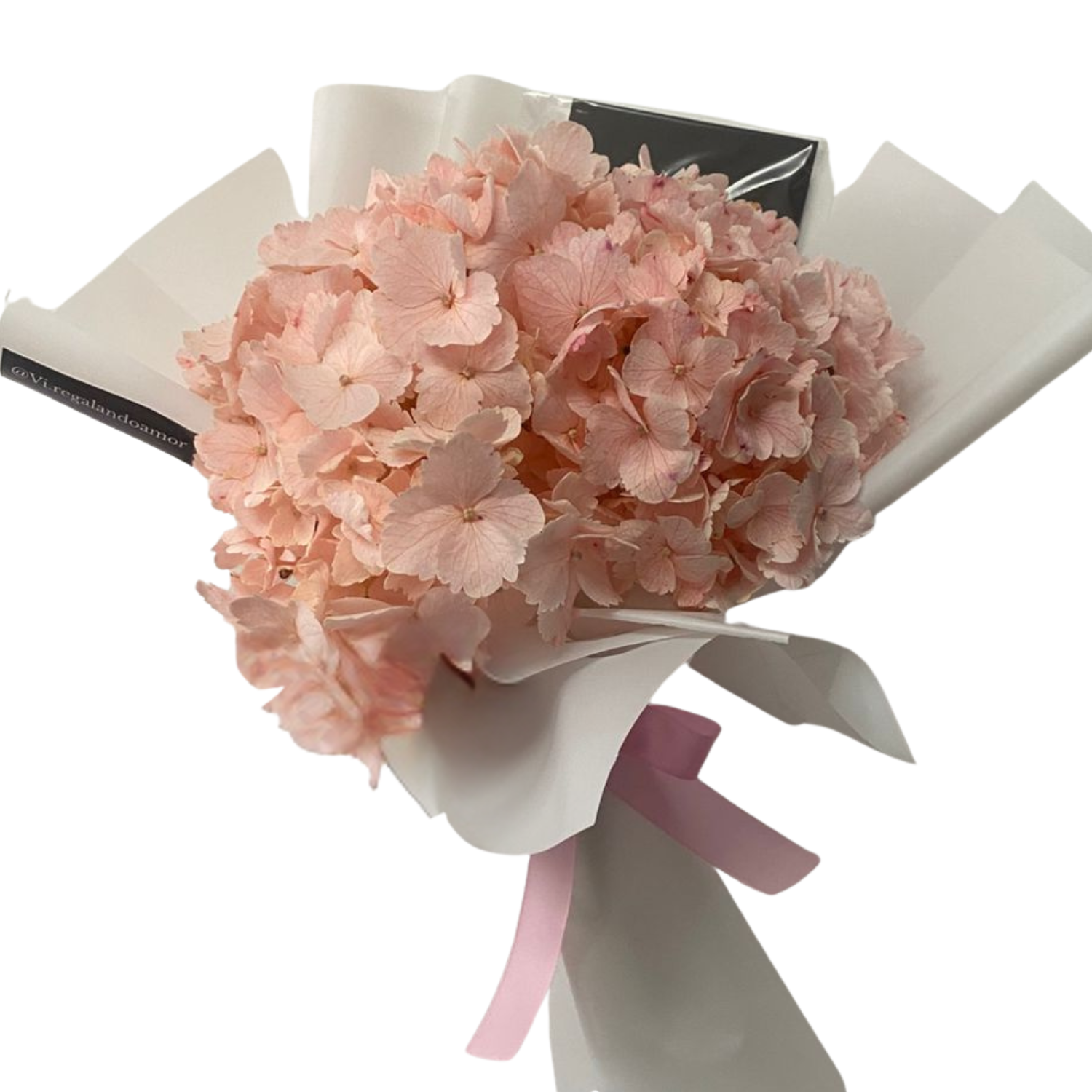 Este elegante ramo presenta una única hortensia, destacándose por su tamaño y belleza. La flor, con sus pétalos exuberantes, ofrece un efecto visual impresionante, ya sea en tonos suaves o intensos. La hortensia, conocida por su riqueza de colores, puede variar en tonalidad debido a su naturaleza pigmentada, lo que permite personalizar la decoración según el gusto y la ocasión. La simplicidad del ramo resalta la sofisticación de la hortensia,