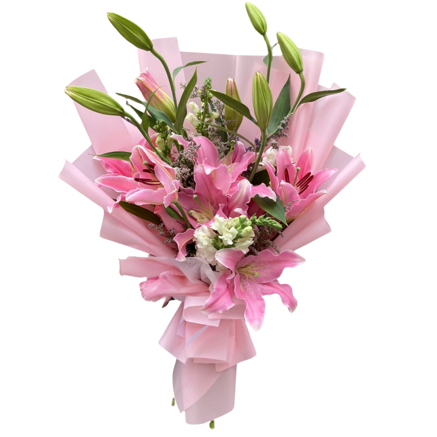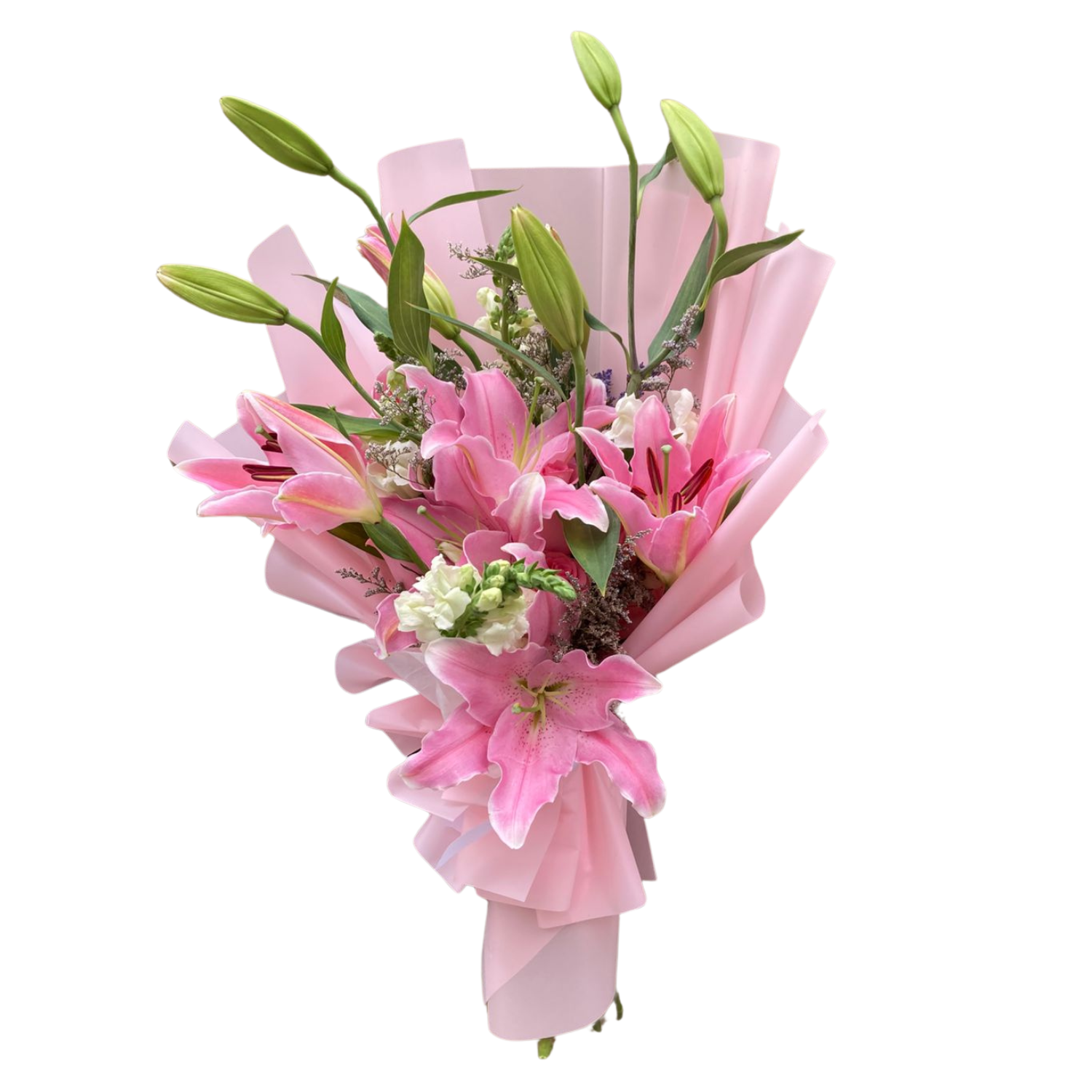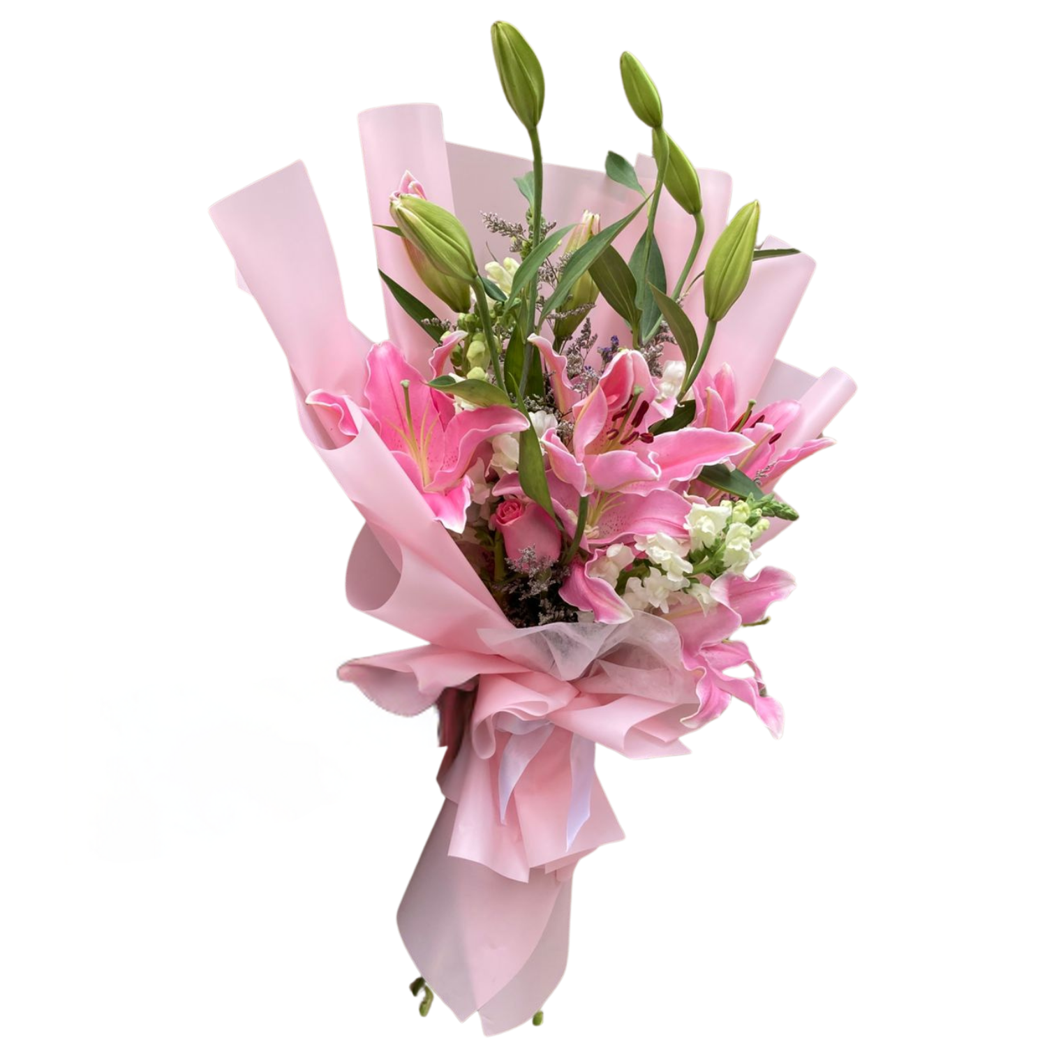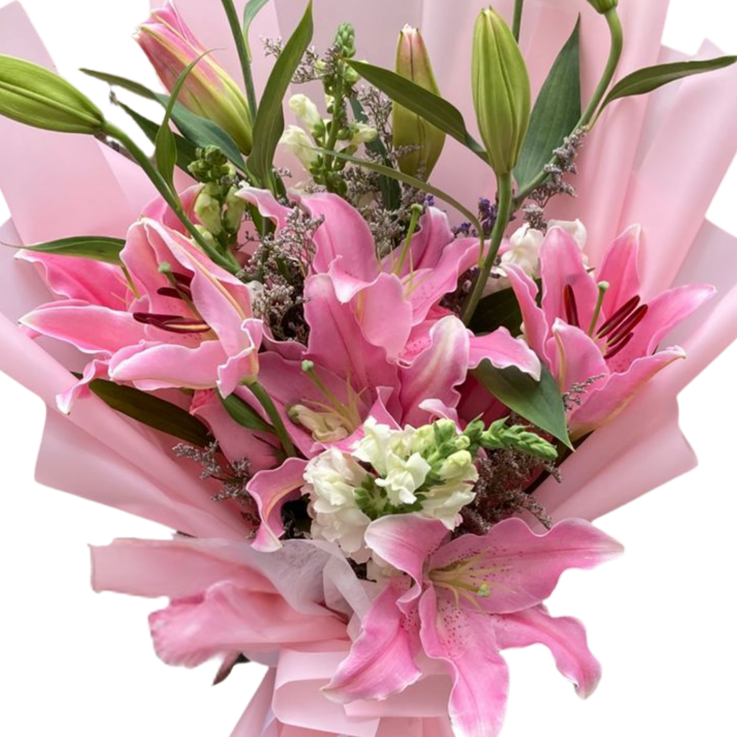 El Ramo Verónica es una elegante y sofisticada composición de lirios rosados o Fucsias y rosas en tonalidades rosadas. Este exquisito arreglo es perfecto para expresar tus sentimientos más profundos y llevar un toque de belleza y frescura a cualquier ocasión especial.