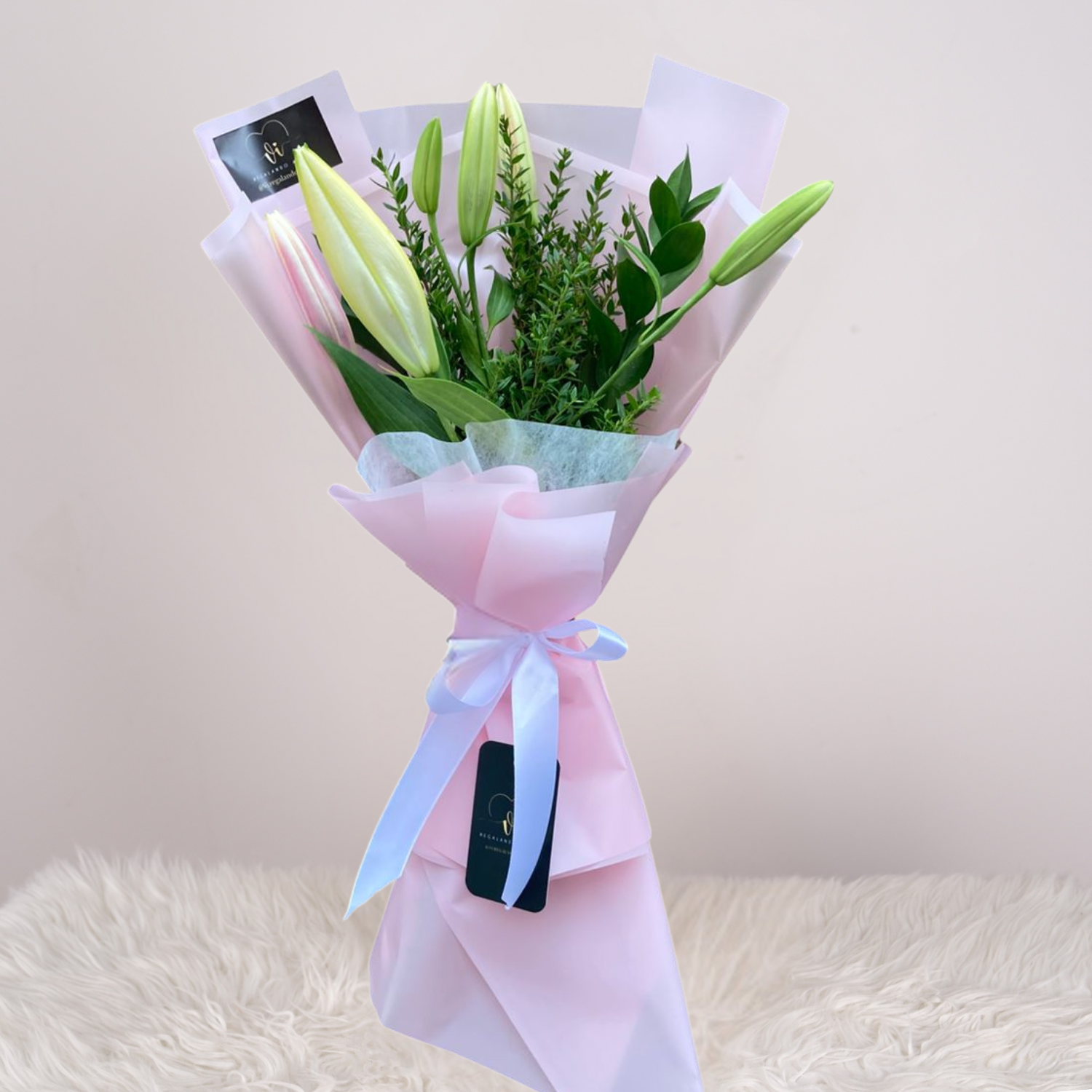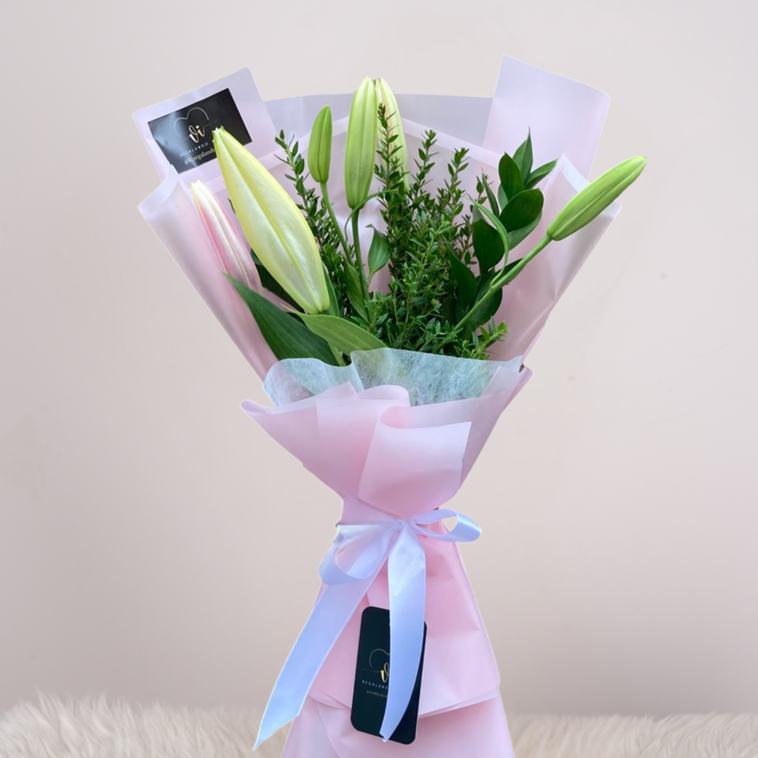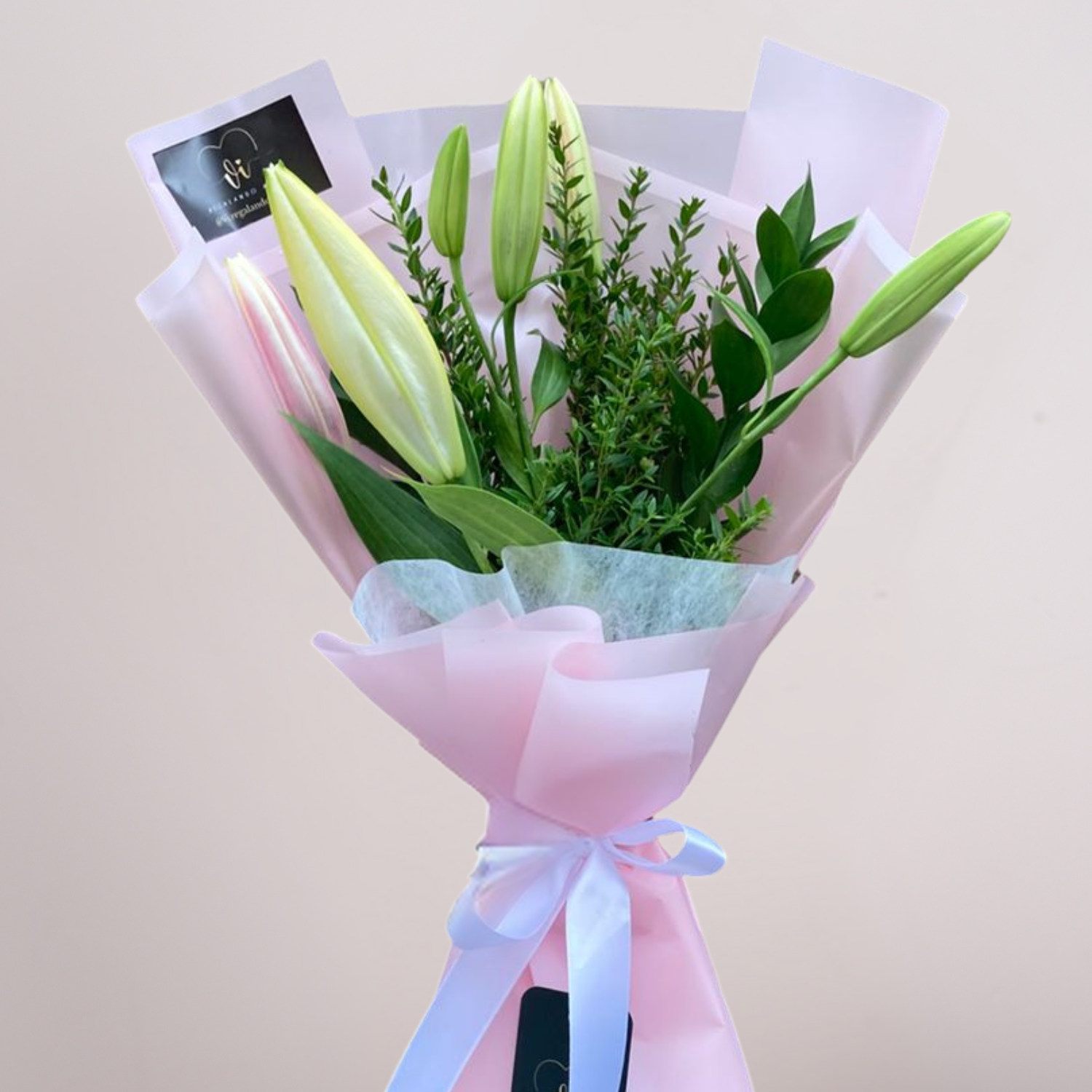Un ramo elegante y minimalista compuesto por lirios blancos cerrados, símbolo de pureza y renovación. Su estilo limpio y delicado lo convierte en un detalle ideal para transmitir calma, serenidad o admiración. Perfecto para ocasiones especiales o para decorar con elegancia cualquier ambiente.